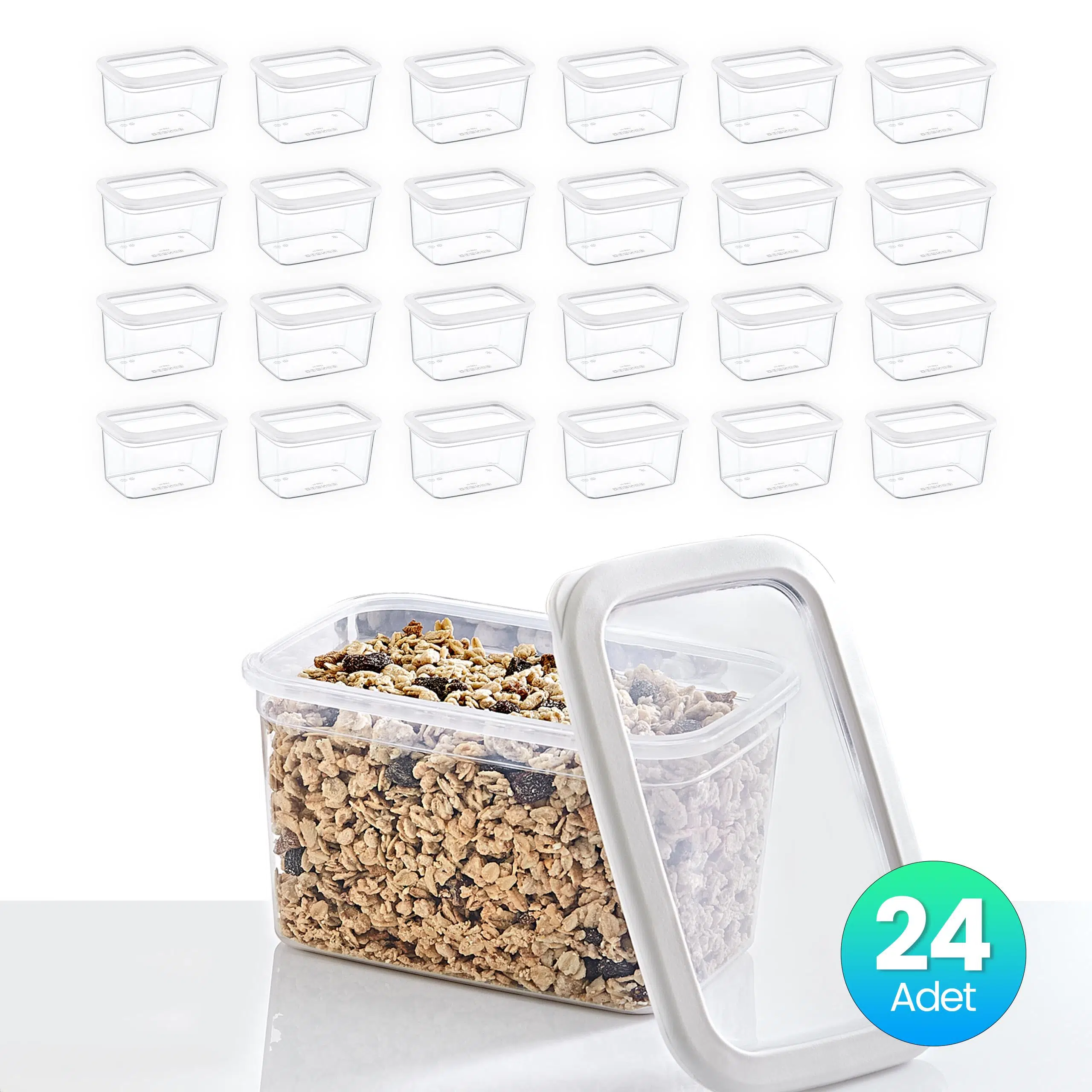 Mutfak düzeninizi kolaylaştırmak için tasarlanan Smartware 24'lü Set Dikdörtgen Saklama Kabı, 1210 ML kapasiteye sahip 24 adet saklama kabı içerir. Dayanıklı ve kaliteli plastik malzemeden üretilmiş olan bu set, uzun süreli kullanım için idealdir.
