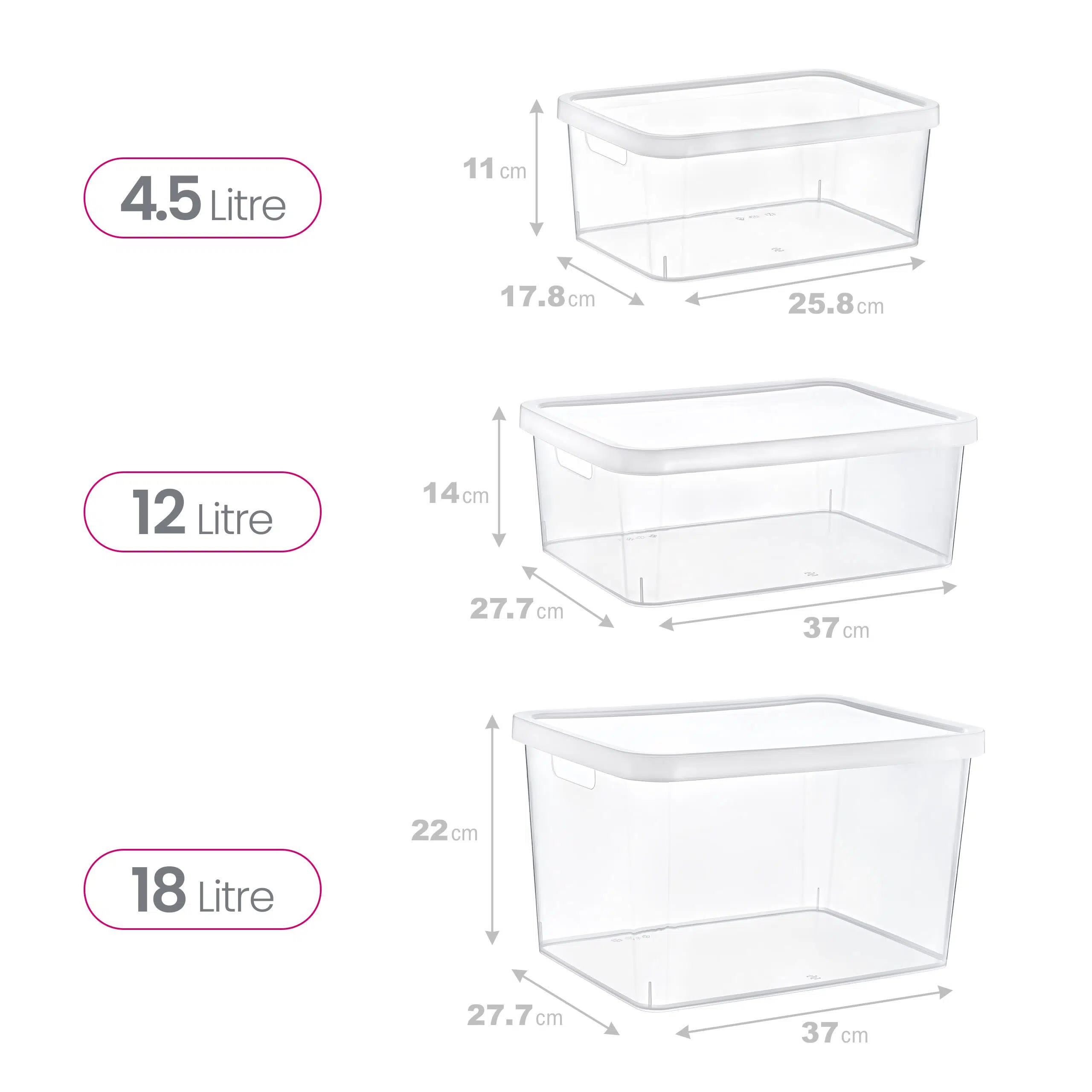 3'lü Stafi Şeffaf Kapaklı Kutu Seti, ev, ofis ve kiler düzenlemelerinde pratik bir depolama çözümü sunar. 18 litre, 12 litre ve 4,5 litre olmak üzere üç farklı boyuttaki kapaklı kutular, çeşitli ihtiyaçlarınızı karşılayacak şekilde tasarlanmıştır. BPA içermeyen ve sağlığa zararlı madde barındırmayan plastik malzemesi, güvenli kullanım sağlar. Çarpmalara ve düşmelere karşı dayanıklı yapısı sayesinde uzun ömürlüdür. Estetik tasarımı, depolama ihtiyaçlarınızı karşılarken şık bir görünüm sunar. Paket içeriğinde farklı boyutlarda 3 adet kapaklı kutu bulunmaktadır ve her biri düzen ve depolama için ideal bir çözümdür. - 18 Litre Ürün Ölçüleri: 370 x 275 x 220 mm- 12 Litre Ürün Ölçüleri: 370 x 275 x 140 mm- 4,5 Litre Ürün Ölçüleri: 175 x 255 x 110 mm