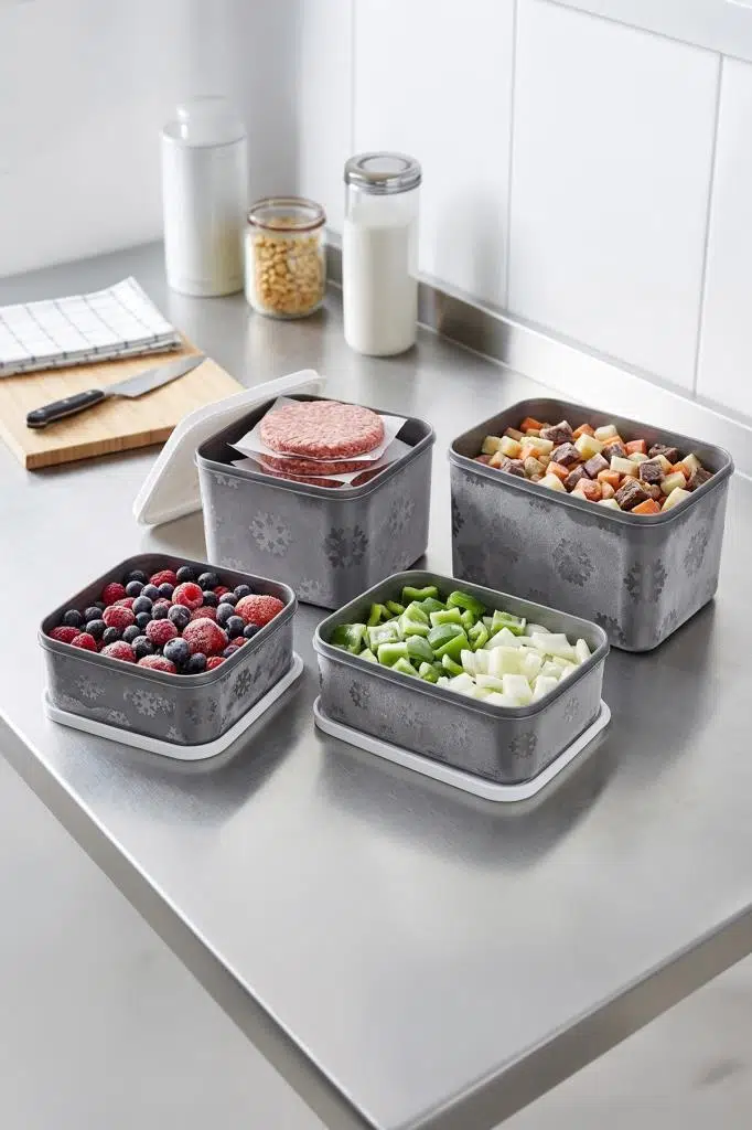 4'lü Set No Frost Saklama Kabı, mutfakta gıda saklama ve düzenleme ihtiyaçlarınız için mükemmel bir çözümdür. 4 Farklı boyuta sahip 4 adet renkli saklama kabı, modüler tasarımı sayesinde buzdolabınızda yerden tasarruf sağlar ve düzenli bir görünüm sunar. Özel yapısı, gıdalarınızın besin değerini koruyarak taze kalmasına yardımcı olur. Sağlığa zararlı maddeler içermeyen dayanıklı malzemeden üretilmiştir, bu sayede güvenle kullanılabilir. Hızlı dondurma özelliği ile zaman kazandırır ve kırılmaz, esnek yapısıyla uzun ömürlü kullanım sunar. Hem pratik hem de estetik bir çözüm arayanlar için ideal bir tercihtir. Paket içeriğinde 1 adet 2600ml, 1 adet 1250ml, 1 adet 2600ml, 1 adet 700ml saklama kabı vardır.