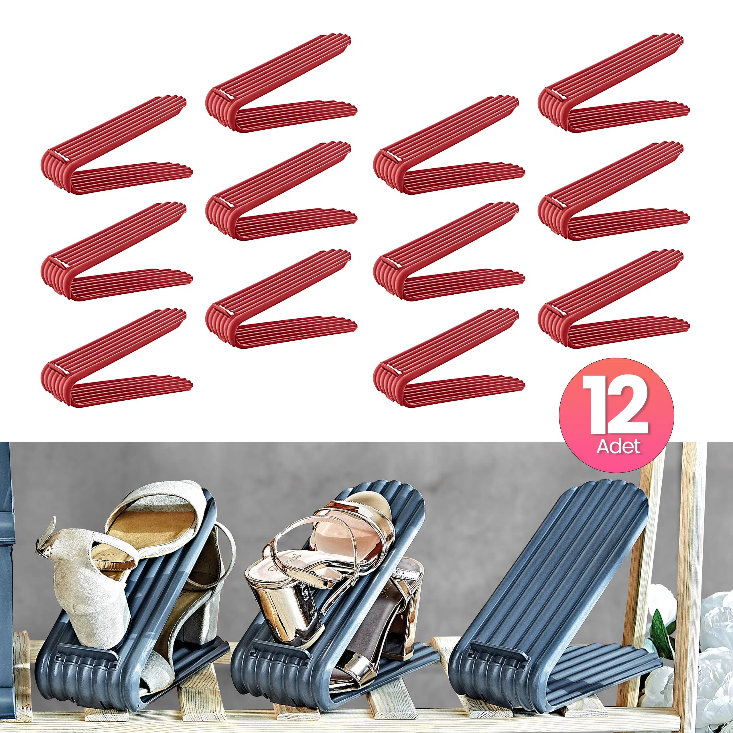 Clamp Ayarlanabilir Ayakkabı Rampası, evde ayakkabı düzeni sağlamak için ideal bir çözümdür. Polipropilen plastik malzemeden üretilen bu düzenleyiciler, sağlığa zararsız olup koku yapmayan özelliğiyle ayakkabı dolaplarınızı ferah tutar. 105 x 275 x 185 mm ölçülerinde olan bu rampalar, ayakkabı yüksekliğine göre kademeli olarak ayarlanabilir ve kısa bot, topuklu ayakkabı, klasik ayakkabı veya spor ayakkabı gibi farklı türler için kullanıma uygundur. Clamp düzenleyici, ayakkabılarınızı düzenli ve erişilebilir bir şekilde saklamanızı sağlarken dolabınızda %50'ye varan yer tasarrufu sunar. Ayakkabı düzenine önem veren herkes için pratik ve işlevsel bir çözüm sunar.