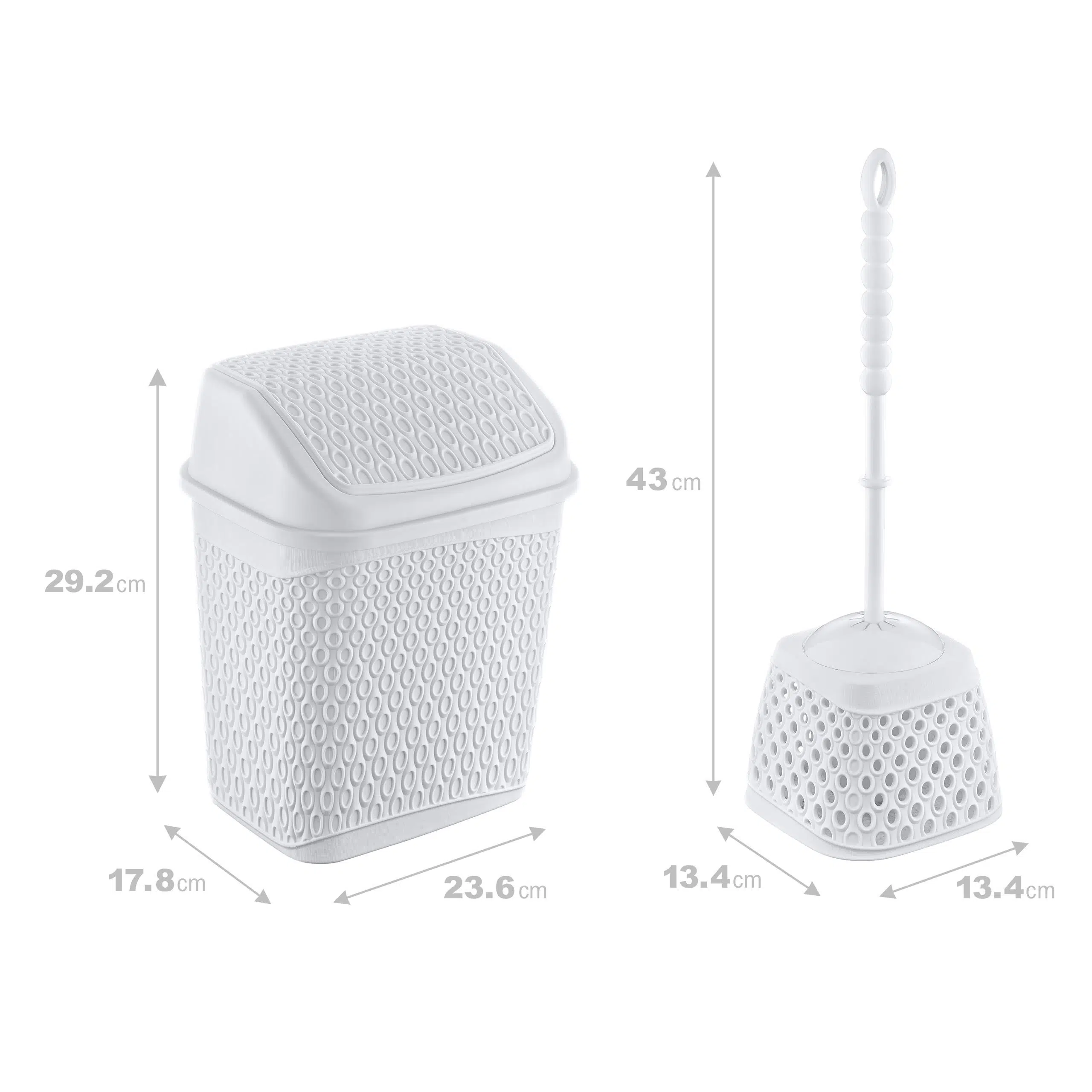 Katre Çöp Kovası ve Klozet Fırçası Seti, ev, ofis, otel ve yatılı okullar gibi mekanlarda hijyen ve düzen sağlamak için tasarlanmış işlevsel bir çözümdür. Set, 1 adet çöp kovası ve 1 adet klozet fırçası içerir. %100 yerli üretim olan ürünler, kanserojen madde içermeyen, dayanıklı plastik malzemeden üretilmiştir. Yumuşak polipropilen malzeme, esneklik ve uzun ömürlü kullanım sunarken, pürüzsüz yüzeyi kolay temizlik sağlar. Katre Çöp Kovası ve Klozet Fırçası Seti, hijyenik ve düzenli bir ortam yaratmak isteyenler için mükemmel bir tercihtir.